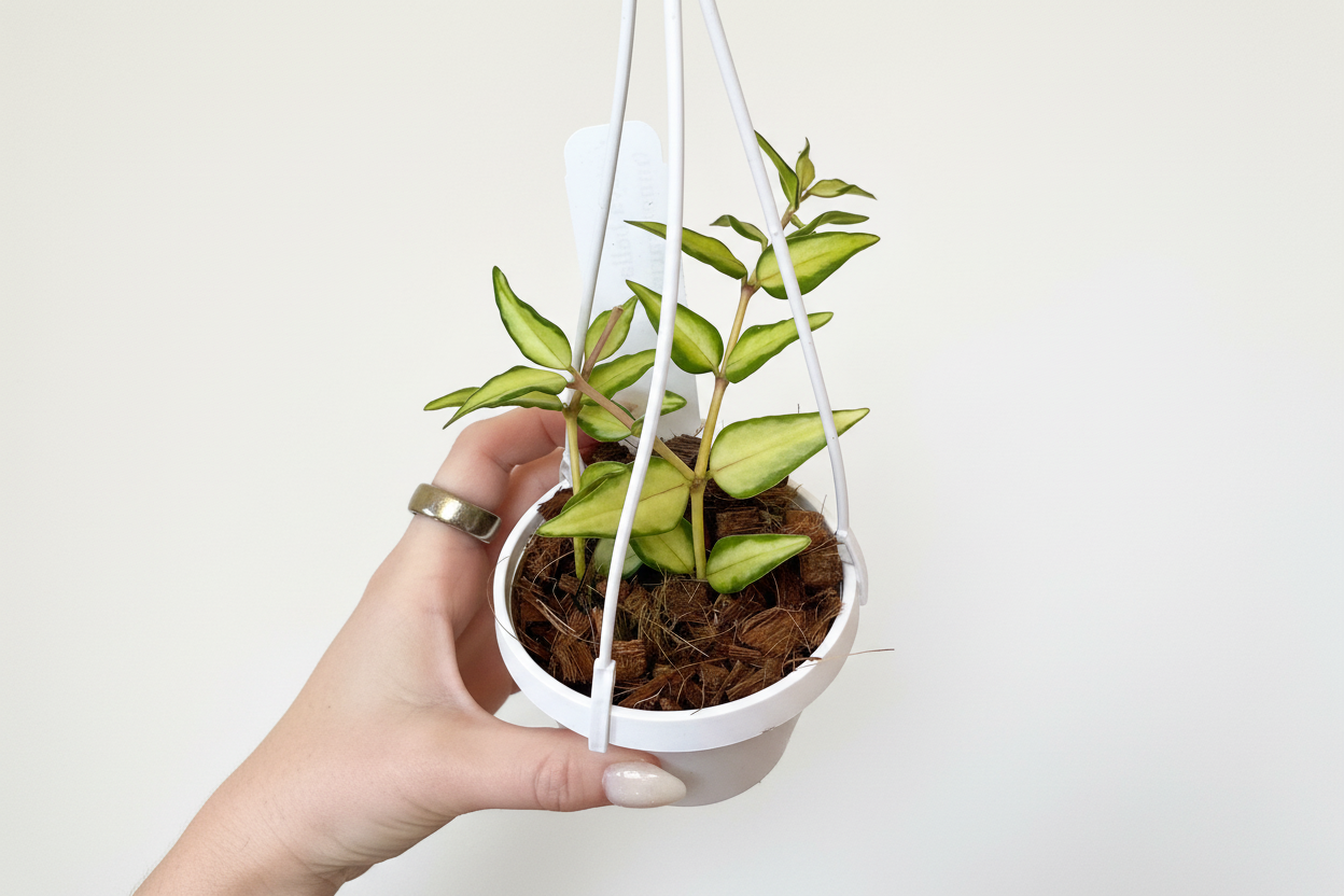 Experience the rare and beautiful 3" Hoya Bella 'Luis Bois' with unique inner variegation. This indoor plant is a must-have for collectors, producing fragrant blooms and stunning, variegated foliage. Its smaller, spade-like leaves add a touch of elegance to any space. Elevate your indoor garden today!