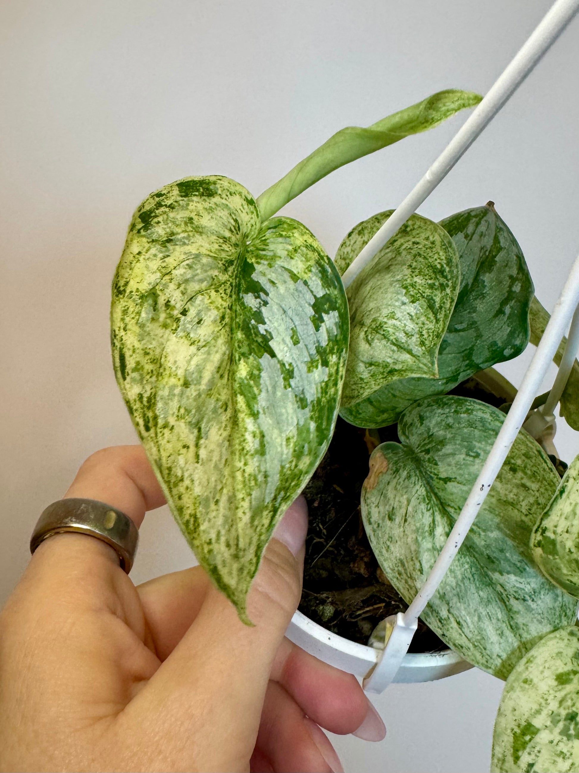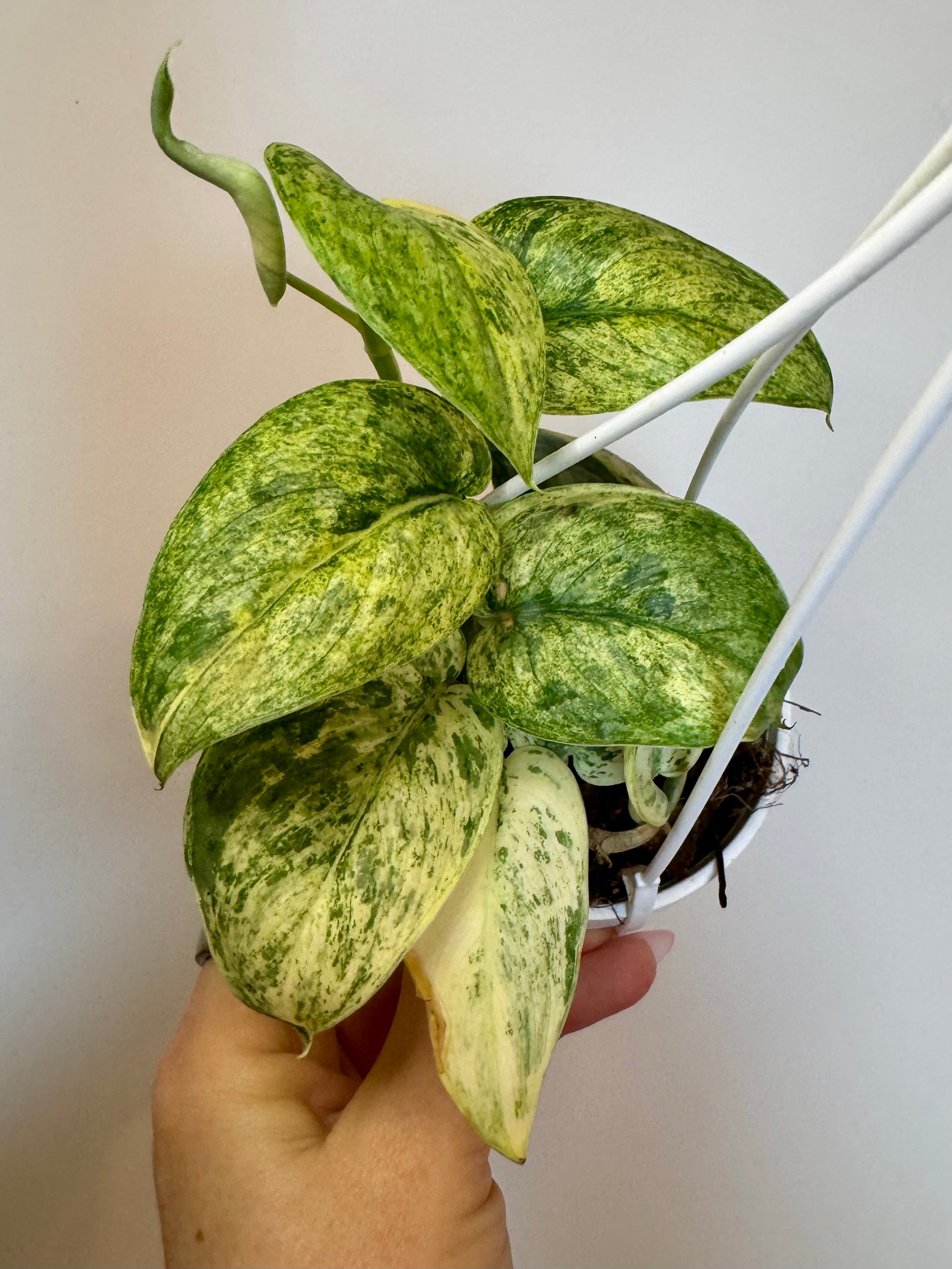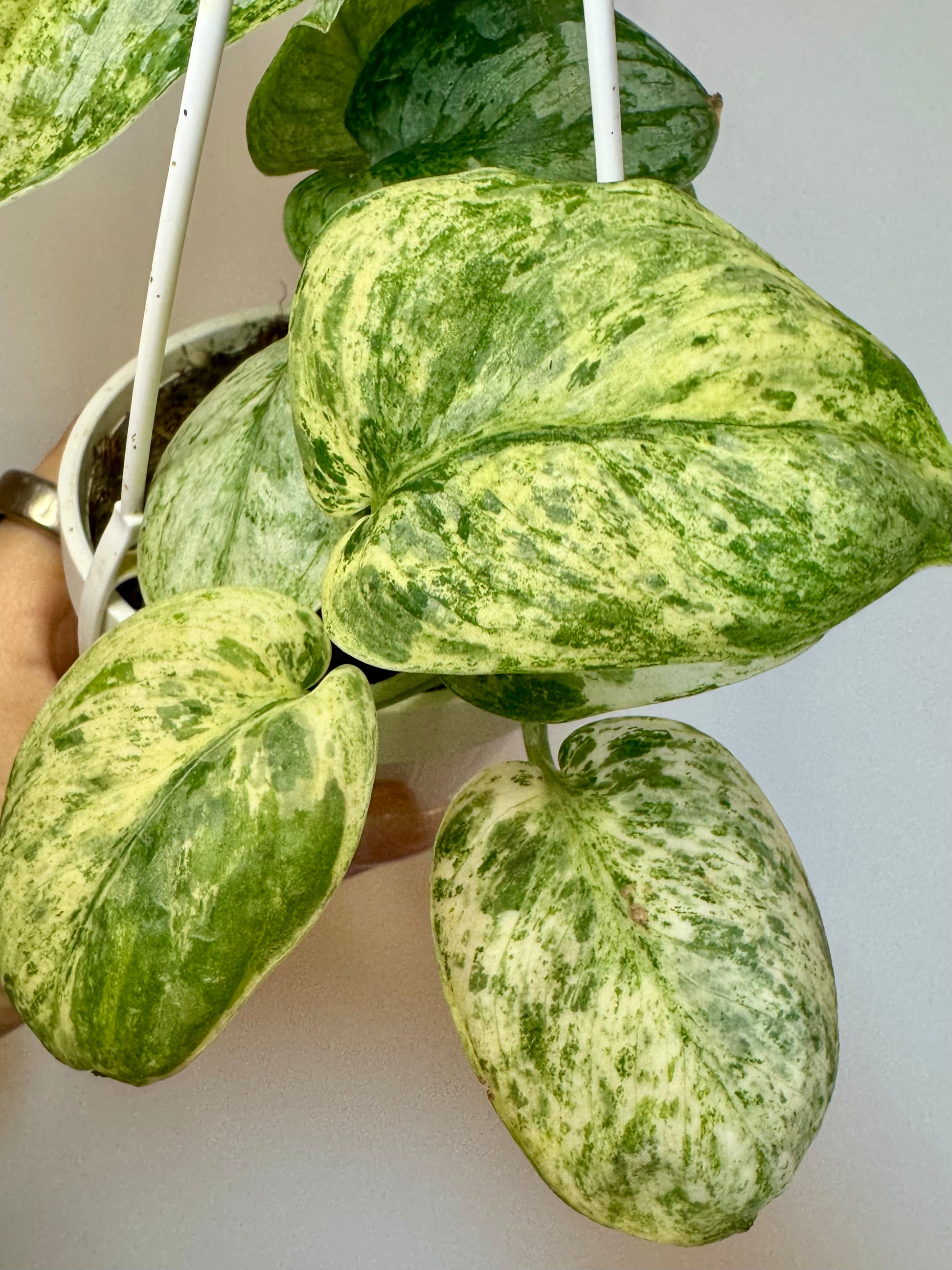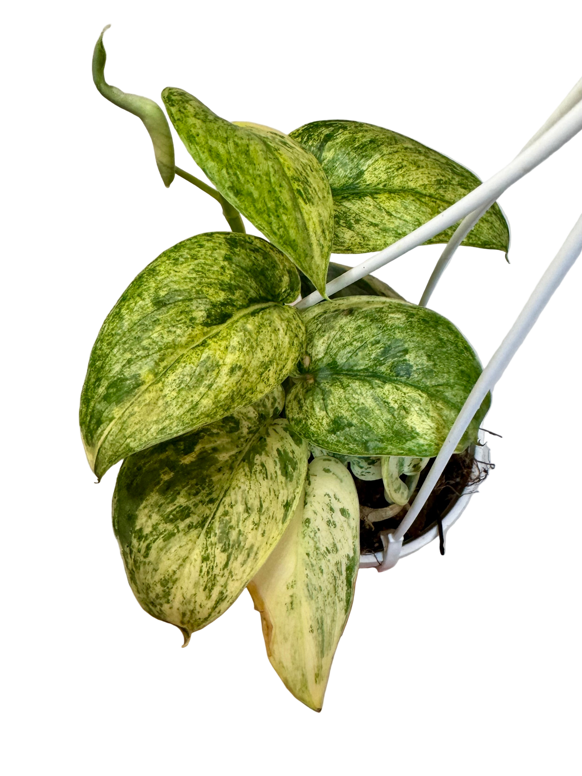 This dreamy Scindapsus brings a delicious twist to the classic Jade Satin. Its thick, velvety leaves are dusted with creamy golden variegation that looks like it’s been caramelized by the sun—hence the name Crème Brûlée! Compact and slow-growing, this one is a collector’s favorite for its rare coloring and lush texture.
