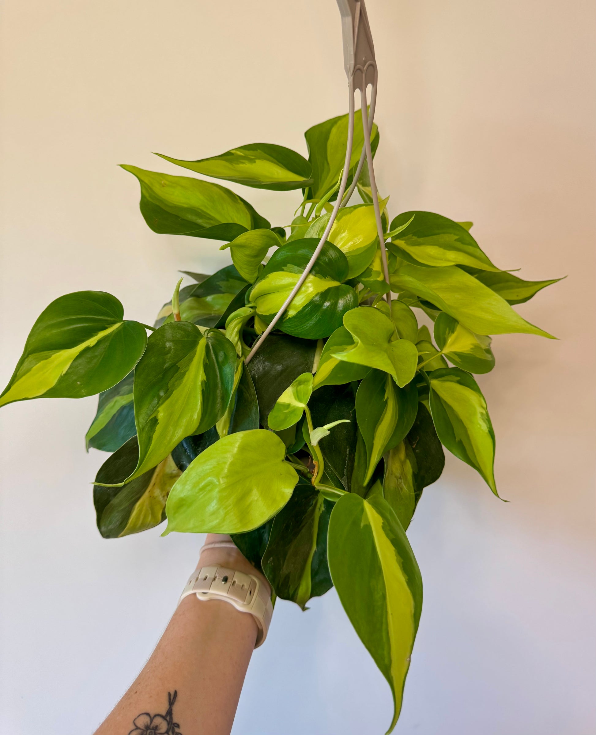 Add a splash of color and warmth to your space with the classic Philodendron Brazil. This fast-growing vine features heart-shaped leaves adorned with rich green and creamy-yellow variegation — creating a dramatic contrast that stands out in any room. Hang it in a basket, let it trail gracefully down a shelf, or train it upward for a stylish and versatile look!